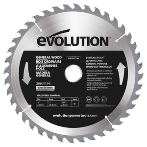 Ostrze 40-zębowe do cięcia drewna Evolution 230 mm. Ostrza tnące Evolution zostały zaprojektowane, aby zapewnić maksymalną wydajność dzięki zastosowaniu najwyższej jakości węglika, hartowanego korpusu tarczy i najlepszych technik lutowania twardego. Wszystkie oferują najwyższą jakość w celu zwiększenia produkcji i wydajności!