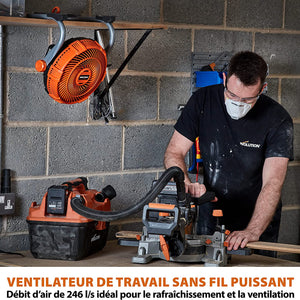 Regulowana kontrola prędkości pozwala wybrać optymalną prędkość wentylatora dla minimalnego hałasu wentylatora i maksymalnego czasu pracy baterii, dzięki czemu bateria 2Ah EXT może zapewnić aktywność do 5 godzin. Dzięki niewielkim rozmiarom, uchwytowi do przenoszenia, możliwości montażu na ścianie i półce, dużym gumowym nóżkom i regulowanemu obrotowi o 360°, R240FAN-Li z pewnością znajdzie miejsce w każdym miejscu, warsztacie, domu, pojeździe roboczym lub przyczepie kempingowej.