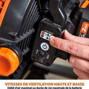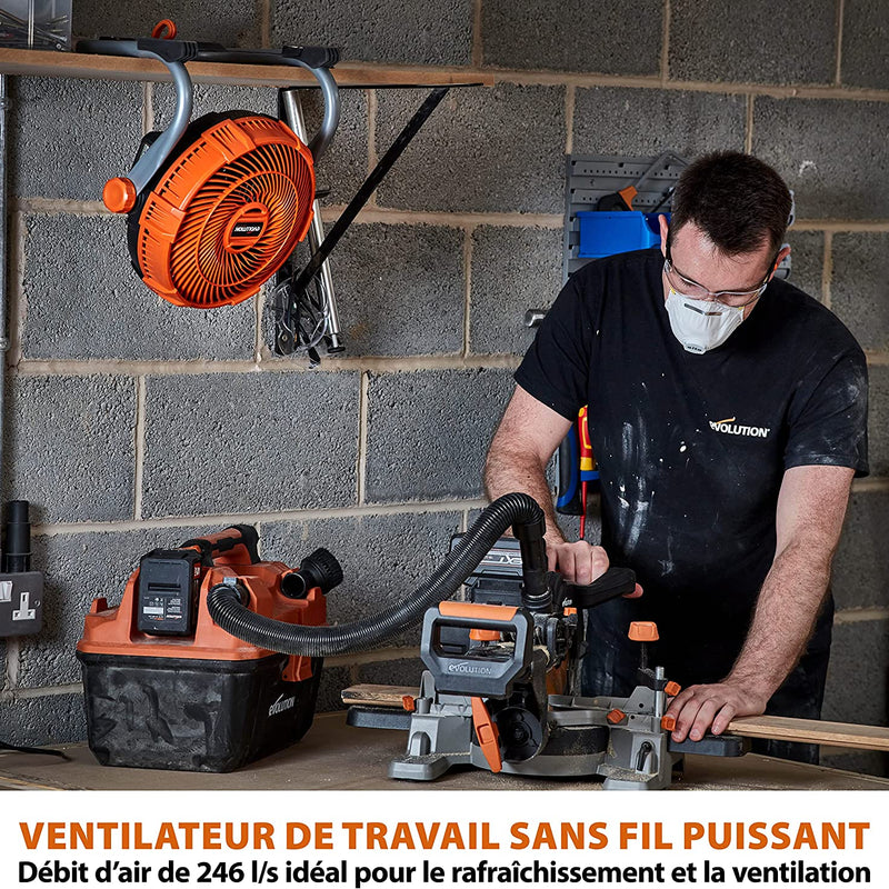 Ten kompaktowy, wydajny i bezprzewodowy przenośny wentylator ma wszystko, czego potrzebujesz, aby zapewnić chłód niezależnie od pogody na zewnątrz i współpracuje ze wszystkimi akumulatorami Evolution i Erbauer 18v EXT.