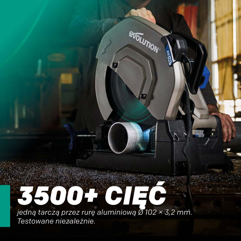 Idealne połączenie: Zoptymalizowana do doskonałej pracy ze wszystkimi pilarkami do cięcia metalu, ale stworzona, aby zapewniać najlepsze doświadczenie przy cięciu aluminium w połączeniu z pilarkami Evolution S355MCS i S355CPS – gwarantując najlepsze rezultaty dla profesjonalnych wytwórców.