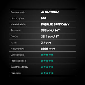 Najwyższej klasy tarcza do cięcia na zimno aluminium, przeznaczona dla profesjonalnych wytwórców konstrukcji.