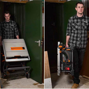 Najwyższej jakości piła stołowa zasługuje na najwyższej jakości stojak – dokładnie to stworzyliśmy w postaci nowego składanego stojaka Evolution Compact. To właśnie on nadaje literze „X” znaczenie w nazwach modeli R255TBLX i R255TBLX+. Wykonany z wytrzymałych rur stalowych, stojak łączy mobilność, stabilność i łatwość użytkowania, stając się idealnym partnerem dla pił stołowych Evolution.