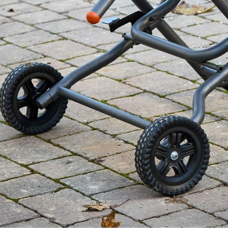 - Składana rama stalowa z dużymi kołami terenowymi – mobilność na każdej powierzchni.