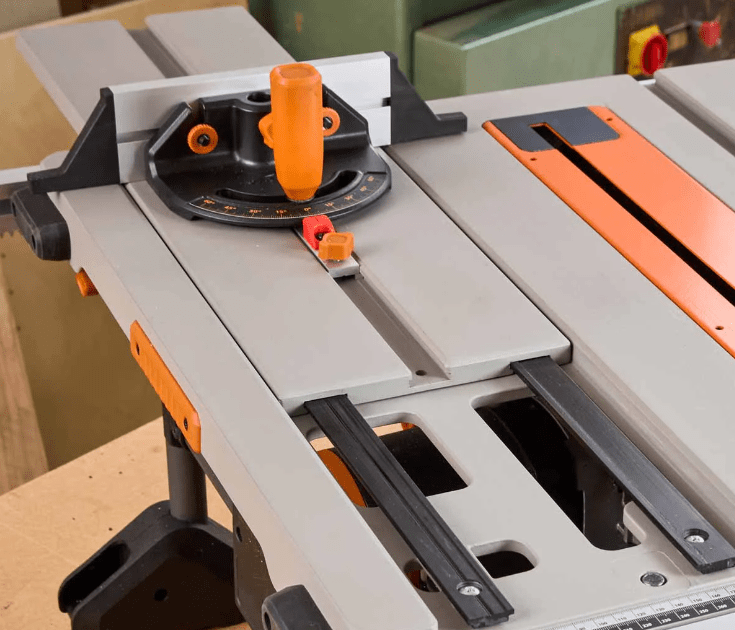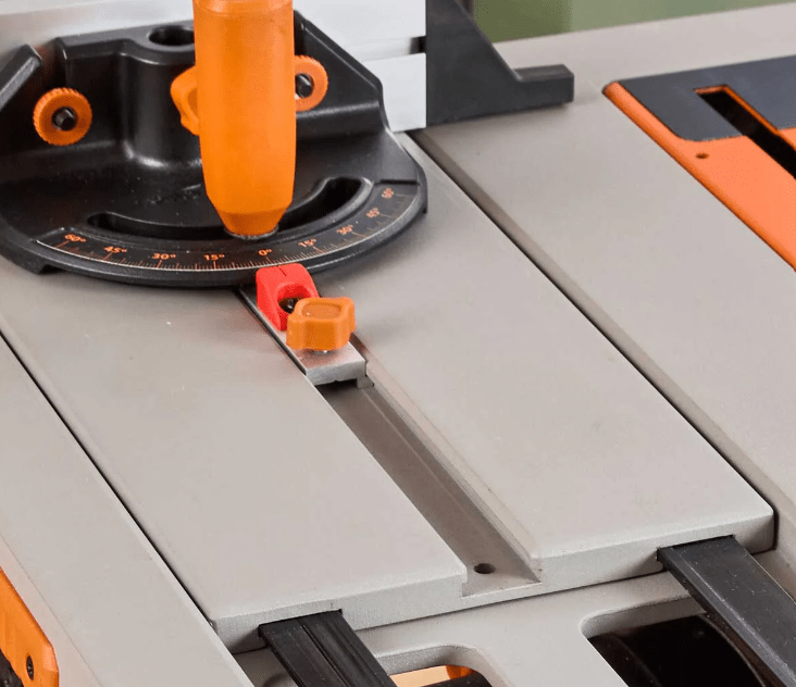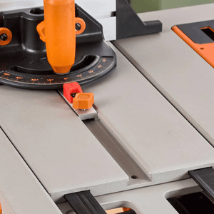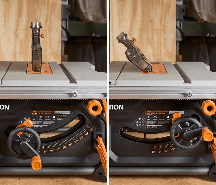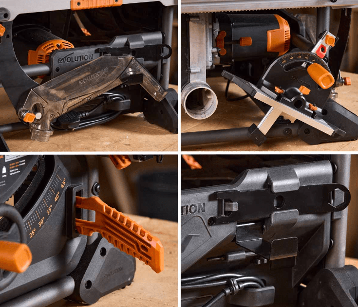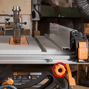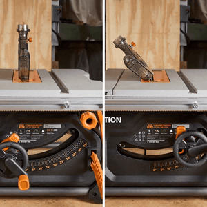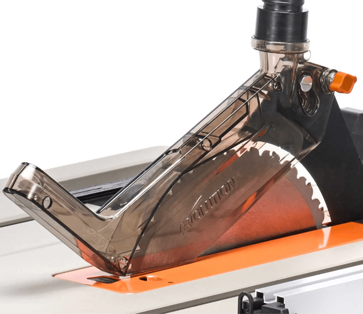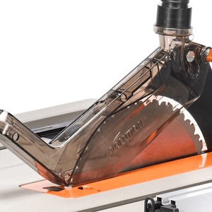 - Riving Knife z szybkim zwalnianiem, z kątem kompensacji i regulacją boczną.