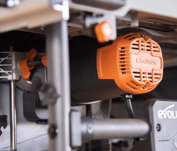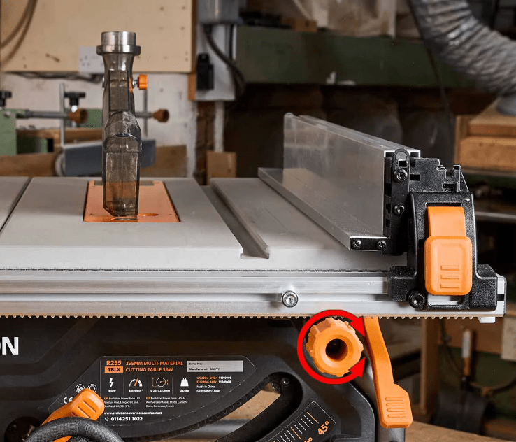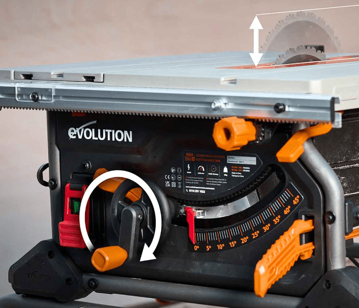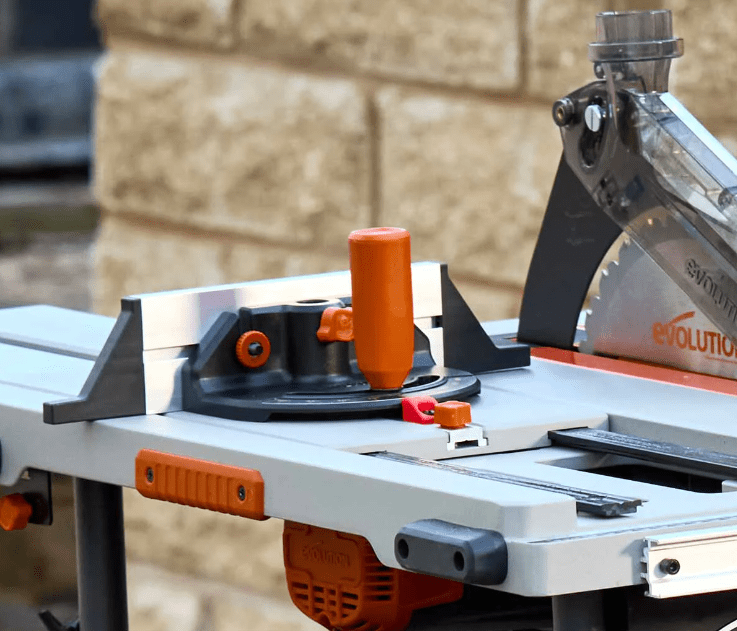 Pilarka tarczowa Evolution R255TBL ze stołem, nazywana również R255TBLX gdy w zestawie znajduje się stojak
