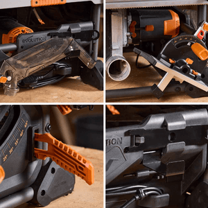 Przenośna pilarka stołowa Evolution R255TBL została zaprojektowana, aby zapewnić niezrównaną precyzję, wszechstronność i wygodę, stając się idealnym partnerem na każdym placu budowy. Wyposażona w podwójny równoległy prowadnik z listwą zębatą i kołem zębatym, gwarantuje precyzyjne i powtarzalne cięcia, niezależnie od używanego materiału lub trudności pracy.