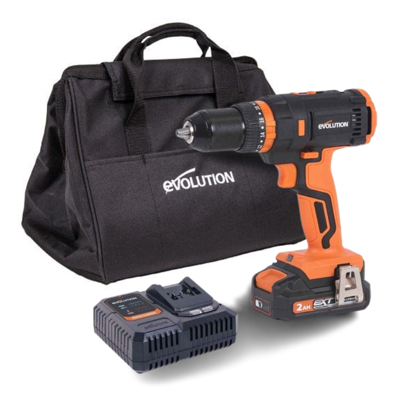 Pakiet Bezprzewodowa wiertarko-wkrętarka R13CMB-Li firmy Evolution z akumulatorem litowo-jonowym 18 V EXT + torba