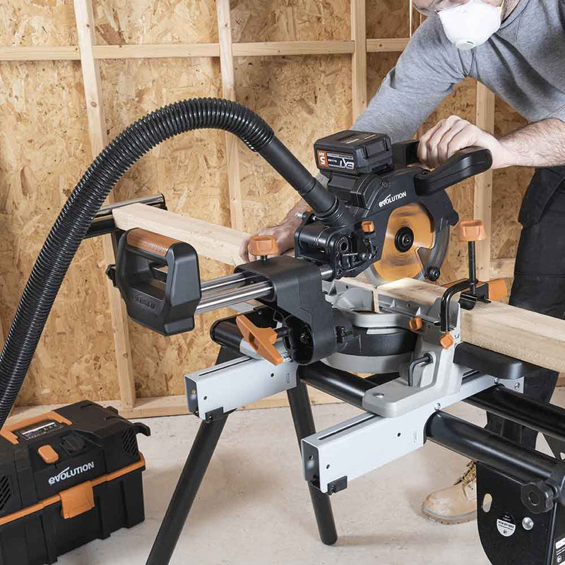 Akumulatorowa piła ukośnica Evolution R185SMS-Li 18V EXT Li-Ion 185 mm z wielomateriałową tarczą TCT