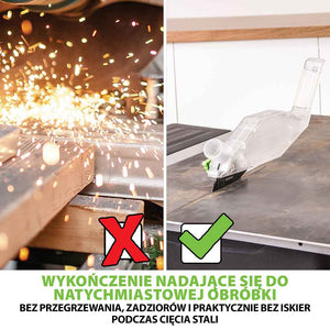 - Technologia Multi‑Material – jedno ostrze do drewna, aluminium, stali miękkiej i tworzyw sztucznych.*