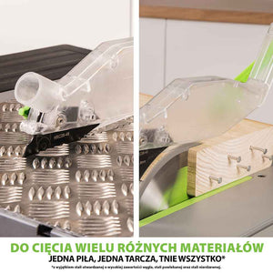 - Technologia Multi-Material – jedna piła, jedno ostrze do drewna, metalu, aluminium i tworzyw.