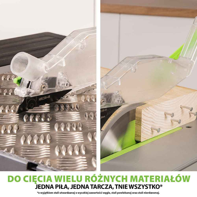 - Dołączona japońska tarcza TCT 255 mm (24T) – trwałość i czyste wykończenie.