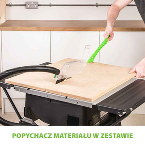 - W zestawie popychacz do bezpiecznego prowadzenia wąskich elementów.