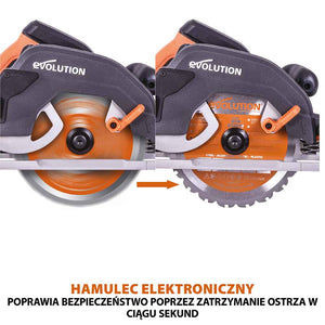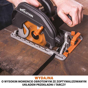Piła tarczowa Evolution R185CCSX 185 mm z wielomateriałową tarczą TCT + prowadnicą 1020 mm