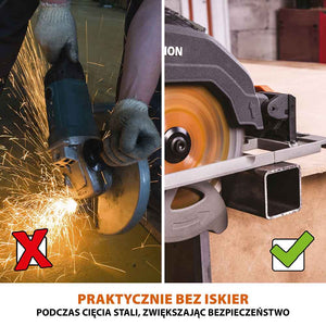 - W urządzeniu zastosowano specjalną technologię cięcia umożliwiającą cięcie wielu materiałów za pomocą jednej tarczy