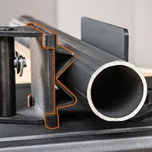 Dołączone uchwyty zaciskowe V-Block zapewniają bezpieczne i czyste cięcie.