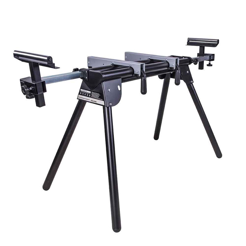Ten wszechstronny i przenośny stojak do ukośnicy jest idealny do użytku w domu, warsztacie i na budowie. Ze względu na masę zaledwie 15,5 kg jest wystarczająco lekki, aby można go było przenieść jedną ręką, a dzięki składanym nogom i teleskopowym ramionom, po złożeniu jego wymiary to 1000 mm x 280 mm x 230 mm.