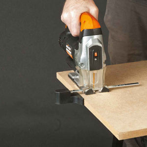 - Dostarczana wraz z regulowaną prowadnicą równoległą - jest to przydatna pomoc w przypadku cięcia i docinania laminowanych paneli podłogowych, gdzie często zachodzi konieczność dokładnego cięcia równoległego. Demontaż (lub montaż) prowadnicy jest łatwy i pozwala na szybki powrót do swobodnego wycinania w razie potrzeby.